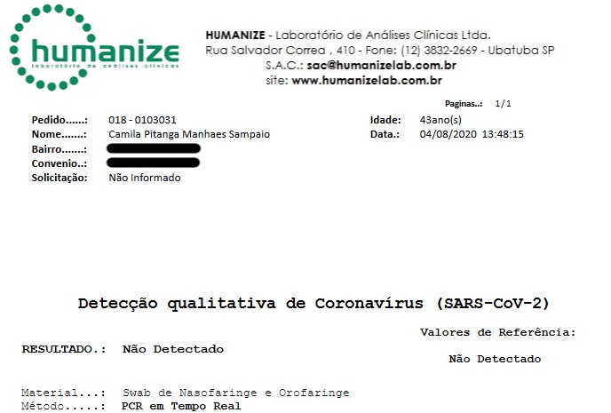 Contatada por Aos Fatos, a assessoria de Camila Pitanga confirmou que ela e sua filha estão com malária, não Covid-19, e enviou o resultado do teste RT-PCR realizado pela atriz. Segundo o laudo apresentado pelo laboratório Humanize, de Ubatuba, não houve detecção do SarS-Cov-2.