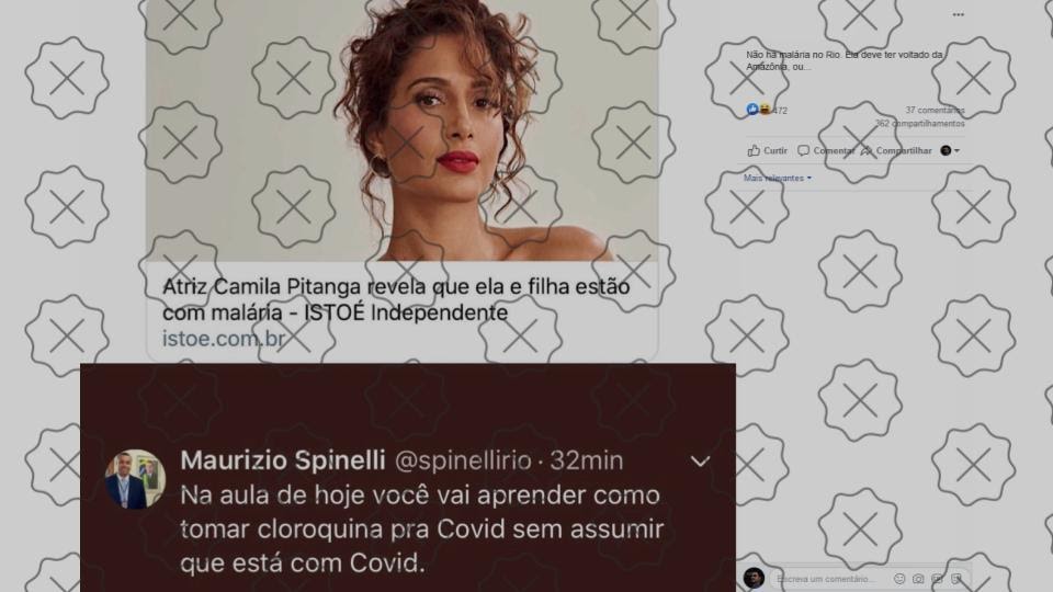 A atriz Camila Pitanga anunciou na segunda-feira (10) em suas redes sociais que ela e sua filha, Antônia Pitanga, foram diagnosticadas com malária. Pouco tempo depois, passaram a circular nas redes sociais publicações afirmando que a artista contraiu Covid-19 e estaria mentindo sobre o diagnóstico para poder tomar cloroquina.