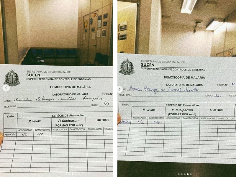 Não é verdade que a atriz Camila Pitanga contraiu Covid-19 e estaria mentindo que foi diagnosticada com malária para tomar cloroquina (veja aqui). A própria atriz, em publicação no Instagram, apresentou os exames que demonstravam a presença do parasita da malária. Os documentos tiveram sua veracidade comprovada pelo Laboratório de Malária do Sucen (Superintendência de Controle de Endemias) de São Paulo, onde foram emitidos.